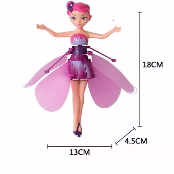 Hermosa muñeca Hada Voladora cuenta con un sensor infrarrojo con inducción que le permite volar cuando encuentra alguna superficie debajo de la muñeca.