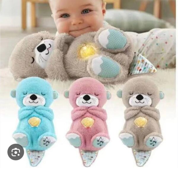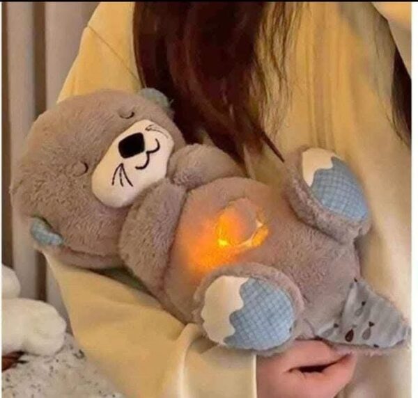 Este peluche, es un juguete terapéutico de excelente calidad y multifuncional, que ayuda mediante una estimulación sensorial a relajarse a la hora de dormir y así poder tener un sueño más placentero, esta nutria simula una respiración artificial mientras emite sonidos o canta hermosas melodías emitiendo una luz tenue amarilla en toda su pancita. ¡Definitivamente el peluche ideal para tu bebe o para ti!