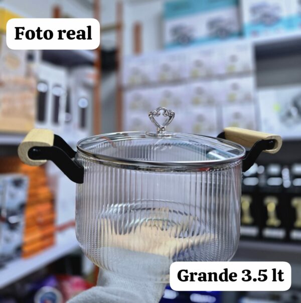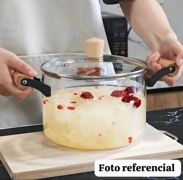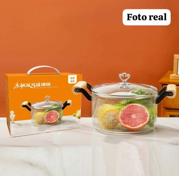 Olla de Borosilicato 3.5L con Asas de Bambú – Elegante y Multiusos