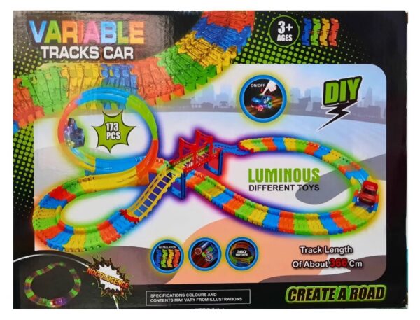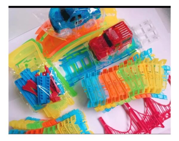 118cm de largo armado Infinitas posibilidades de pista: enciende la creatividad y el aprendizaje con este juego de pista de carreras brillante de 173 piezas, diseñado para inspirar imaginación y desarrollar habilidades esenciales en niños de 3 años en adelante. Diversión que brilla en la oscuridad: transforma el tiempo de juego con más accesorios de pistas luminosas, puentes y 2 autos de carreras LED que iluminan la noche, ofreciendo horas de emoción emocionante en las carreras (requiere 2 baterías de tamaño AA, no incluidas). LAS PISTAS SE CONVIERTEN EN UNA FORMA DE MONTAÑA RUSA CIRCULAR QUE CONSTRUYE UNA ROTACIÓN DE 360 GRADOS PARA LOS COCHES. JUEGO DE JUGUETES CREATIVOS GLOW TRACK Material de alta calidad: material plástico superior para prolongar la vida útil del automóvil, proporcionar alta robustez y resistencia a choques. Fabricado con material ABS y PP de alta calidad, el juguete de pista de carreras es seguro e inofensivo para el cuerpo humano.