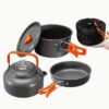 Set de Ollas Camping 2-3 Personas Kit de Utensilios de Cocina de Camping Aluminio Ollas y Sartenes para Acampar, Cocina Portátil para Camping Senderismo Acampada al Aire Libre (Naranja)