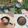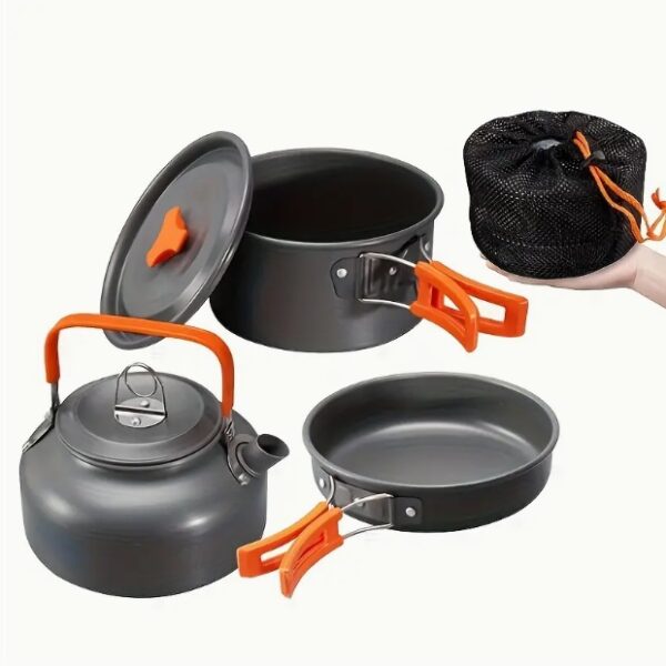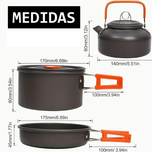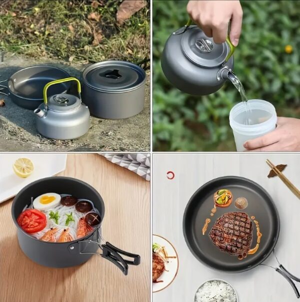 - ???? Juego de Ollas para Acampar Liviano y Portátil: el juego de ollas para acampar es fácil de transportar ya que es compacto y liviano. Es ideal para viajes de campamento, excursiones de senderismo, como utensilios de cocina adicionales para actividades al aire libre como picnics familiares