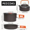 - ???? Set de Cocina para Camping de Aluminio: el juego de cocina para acampar está hecho de aluminio liviano de alta calidad, que es resistente, resistente a altas temperaturas, liviano y no es fácil de deformar y corroer; El mango resistente al calor está hecho de plástico aislante para mantener las manos alejadas del calor